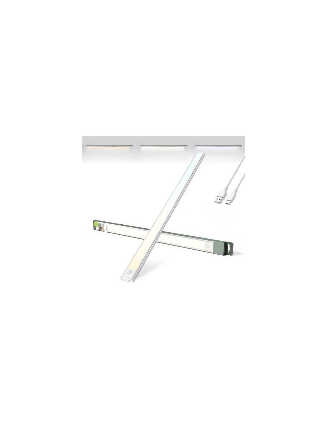 Brendz Kitchen Lighting Undercounter LED, Éclairage sous plan, 60 cm, Bande LED rechargeable USB-C, 4400 mAh, 3 températures de couleur, Intensité variable, Magnétique, Éclairage de cuisine sans fil, Éclairage d'armoire, Puyo Argent